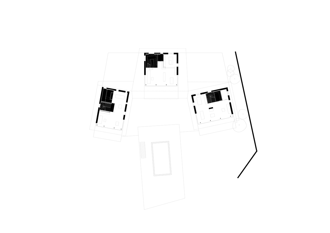 l’idea progettuale è modellata attraverso il paesaggio: tre cubi disposti liberamente, legati da una copertura sospesa, protettiva, creano interessanti spazi interstiziali e un gioco di visuali dall’interno verso l’esterno e viceversa. particolare attenzione è usata nella valorizzazione degli scorci verso i campanili, la campagna nella valle e le montagne. tra i corpi viene a formarsi un “centro”, una piazza che si apre e dialoga con il paesaggio.