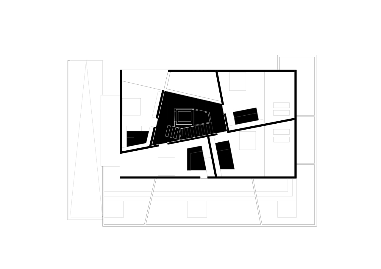 das hotel an einer schnittstelle der stadt, an einer schnittstelle zwischen innen und außen, zwischen tradition und moderne. ein übernehmen der merkmale, charakteristiken der stadt. die idee eines kompakten baukörpers geschossweise zu zerlegen um genügend licht ins innere zu lassen. ein spiel mit lichthöfen. die einzelnen geschosse werden horizontal verschoben, um einen freien und trotzdem kompakten baukörper zu erhalten. schubladenartig bewegt sich der raum; wo sich die altstadt in vertikale sektoren aufteilt, gewinnt sie hier die horizontale dimension. eine kontinuierliche fassade – nur zwei fenster zur stadt, der raum projiziert sich nach außen in form eines massenspiels, der dadurch öffentlichen raum generiert. die auskragungen wirken wie erker, ausstülpungen in der fassade. das licht durch innenhöfe ins innere geführt, gänge, zimmer, wegräume in einer lichtdurchfluteten intimität.